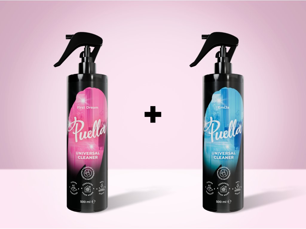 Puella Universalreiniger mit Duft und pH-neutralem Wert. Reinigt sanft und effektiv alle Oberflächen und entfernt Staub, Flecken und Fingerabdrücke. Jetzt erhalten Sie von uns eine zweite Flasche Reiniger GRATIS dazu.